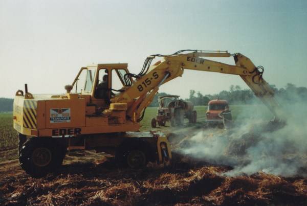 Am Pfingstmontag 1982 um 4.45 Uhr alarmierte uns die Einsatzzentrale Regensburg. Am Gemeindeverbindungsweg Niedertraubling – Scheuermühle brannte ein Strohlager. Da das Löschwasser mehrere hundert Meter herangefahren werden musste, wurden zwei 6000 Liter Schleuderfässer eingesetzt. In den Mittagsstunden war das Feuer schließlich gelöscht.