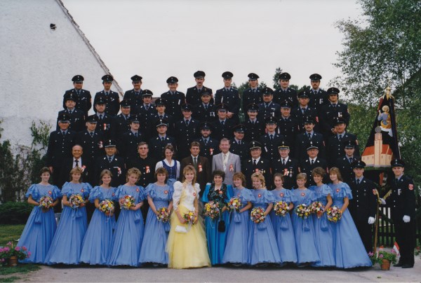 Nach viel intensiver Arbeit des Festleiters Hans Scheck, seines Stellvertreters Rudolf Pöschl sen. und des Festausschusses stand schließlich das Festwochenende vor der Tür.Freitag, 01.07.1988Am Freitag trafen sich die Feuerwehrkameraden und dann ging es mit der Blaskapelle Mintraching zur Fahnenmutter Rosa Pöschl, zur Fahnenbraut Ingrid Winklmeier und zu den Festdamen Sabine Ehrenreich, Heike Kiendl, Manuela und Maria Ostermeier, Birgit und Waltraud Scheck, Andrea und Georgine Ströhuber sowie Birgit Wartlsteiner und Sonja Wartlsteiner.Nach Abholung des Schirmherrn Albert Guggenberger und unseres Patenvereins FF Alteglofsheim zog man zur Wallfahrtskirche nach Scheuer zur Totenehrung. Nach dem Gedenken ging man zurück nach Mangolding ins Festzelt.