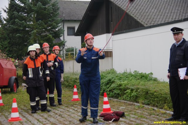 Nach einigen intensiven Übungsnachmittagen unter Leitung der Jugendwarte war es Ende Oktober so weit und ein Teil unserer Jugendgruppe legte die Prüfung zum bayerischen Jugendleistungsabzeichen ab. Bei der Abnahme konnten sich das Schiedsrichterteam mit Kreisbrandinspektor Ludwig Haslbeck und Kreisjugendwart Josef Steinberger vom Eifer und dem guten Wissensstand der Jugendlichen überzeugen.