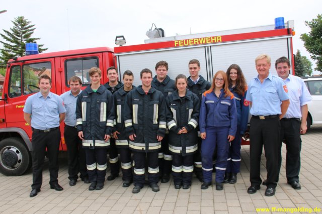 Dieses Jahr erklärten sich neun Jugendliche unserer Jugendgruppe bereit, die neue Modulare Truppausbildung, kurz MTA, durchzuführen. In diesem Rahmen lernten die Feuerwehranwärter die wichtigsten Grundlagen des Feuerwehrdienstes. Das reichte von der Theorie, wie z.B. dem Wissen über Gefahrstoffe und deren Kennzeichnung, bis zur Praxis wie dem Durchführen eines Löschangriffs. Die Ausbildung wurde von Jugendwart Thomas Wanninger mit Unterstützung durch die Kommandanten Pöschl und Höfler durchgeführt. Dank der häufigen Übungen konnte die Ausbildung innerhalb weniger Monate abgeschlossen werden, sodass die Teilnehmer gut vorbereitet am 01.08.2015 zur Abnahme antreten konnten. Trotz Nervosität meisterten alle Teilnehmer die gestellten Aufgaben ohne Probleme und legten damit den Grundstein für den Feuerwehrdienst und weitere Lehrgänge. Wir möchten uns bei allen neun Teilnehmern für ihre Bereitschaft und Ausdauer bedanken, diese zeitintensive Ausbildung zu absolvieren und hoffen, dass diese nur die erste von vielen weiteren in ihrer Feuerwehrlaufbahn war