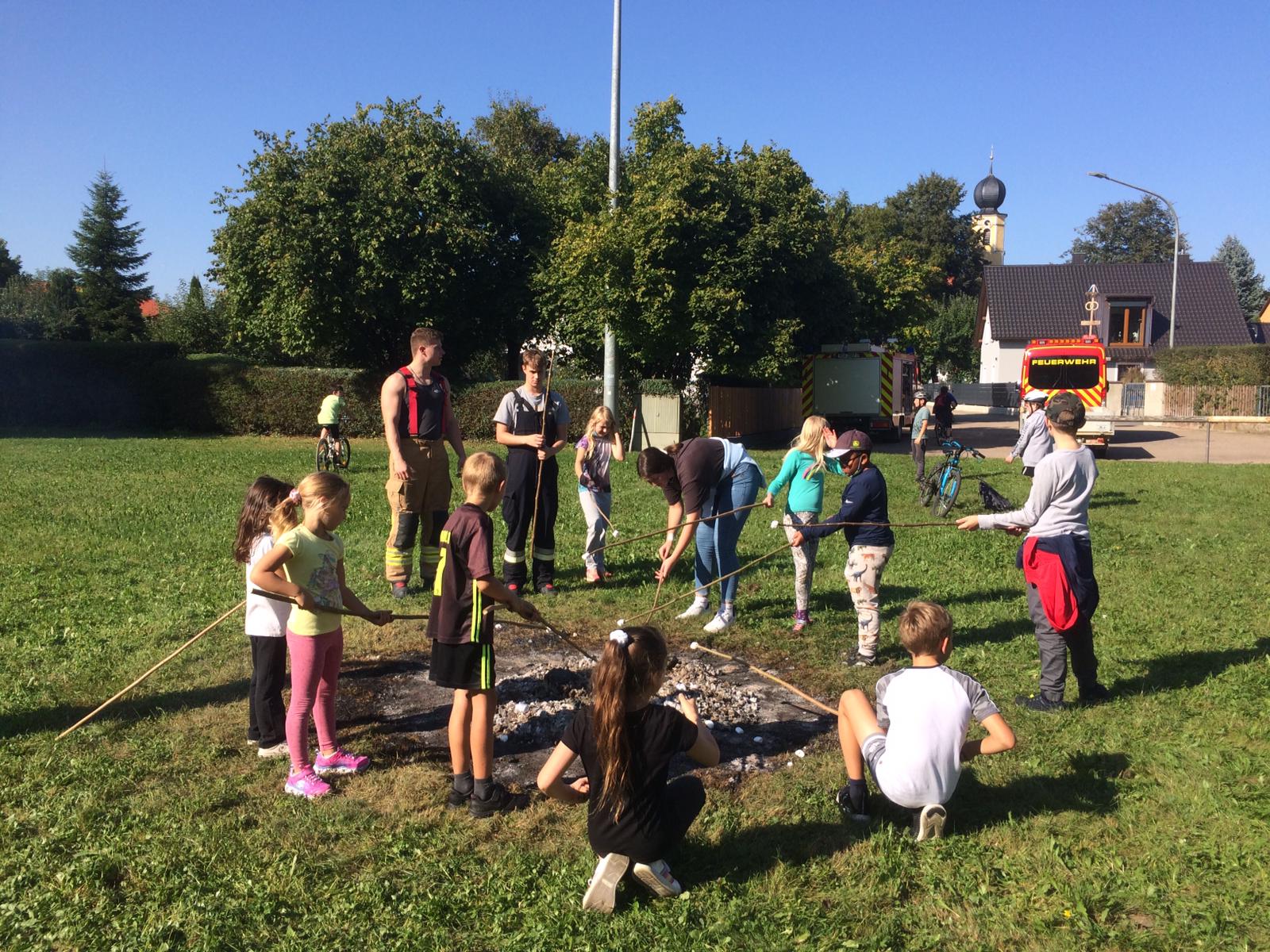 In der ersten Gruppenstunde führten wir eine Feuerwehr-Olympiade durch. Dabei galt es verschiedene Aufgaben zur Feuerwehr zu beantworten und Aufgaben zu lösen. Der Spaß durfte dabei natürlich auch nicht fehlen.